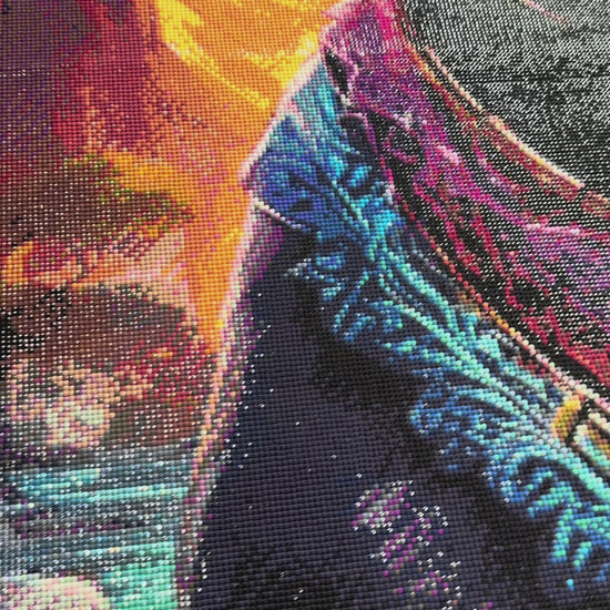 Toile douce 100% Coton avec bord cranté. Colle coulée sans bord. Protection transparente. DMC claire, lisible et ‘layout’ net. Diamants résine avec une qualité et une gamme de couleur incroyable (Ab, Pailleté, Métallique ...). Préparé en sachet zip. Feuille de route et DMC autocollante. Tool kit de base pince, stylet, colle, barquette.