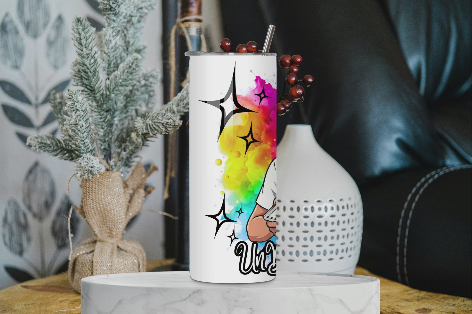 1x Tumbler isotherme décoré à la main